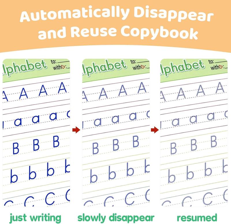 【Children Magic Copy Books】The matching refill uses magic ink, it can automatically decoloration in 30 minutes after writing, so the magic copybook can be used repeatedly. Magic copybook for kids to writing beautiful English.